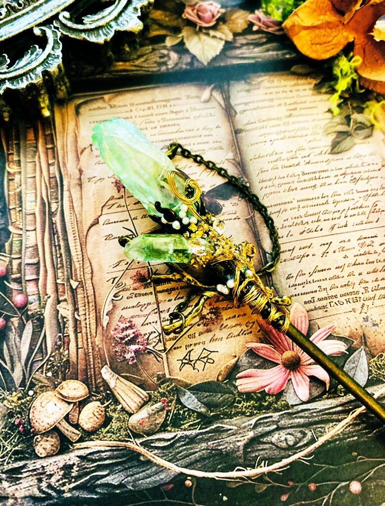小さな水晶ポイントが可愛い マジックワンド風簪 ブロンズベース 天然石 ワイヤー 小枝 ビジュ